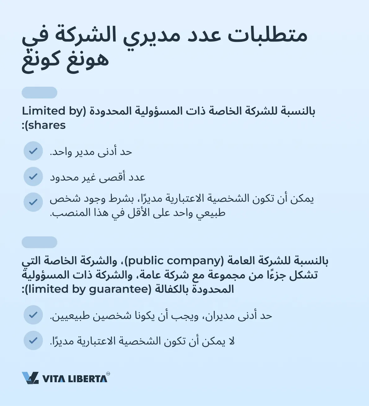 تحدد تشريعات هونغ كونغ متطلبات الحد الأدنى والحد الأقصى لعدد المديرين حسب نوع الشركة. تهدف هذه المتطلبات إلى ضمان الإدارة والرقابة المناسبة.