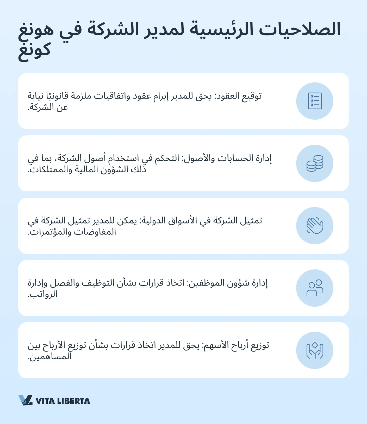 الصلاحيات الرئيسية لمدير الشركة في هونغ كونغ: