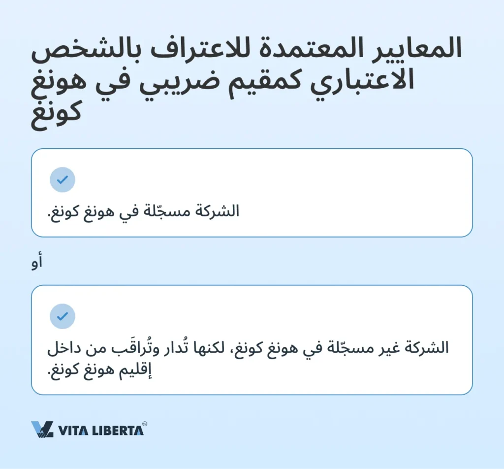 - الإدارة والرقابة من هونغ كونغ: إذا لم تكن الشركة مسجّلة في هونغ كونغ، فيجب أن تُدار وتُراقَب من داخل إقليم هونغ كونغ.
