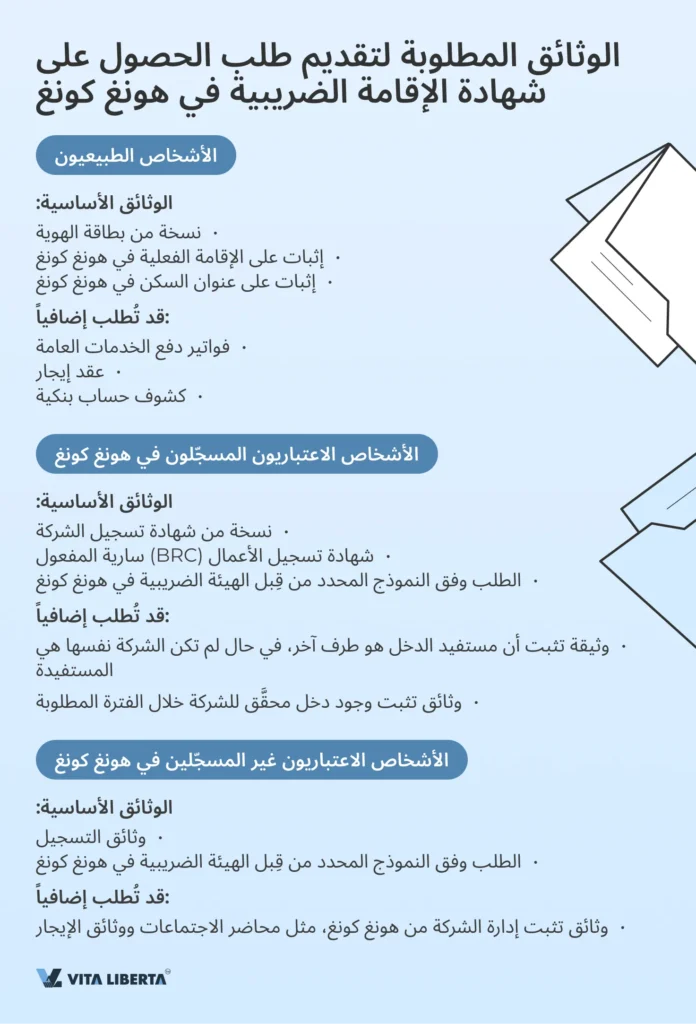 عملية تقديم طلب الحصول على شهادة الإقامة الضريبية في هونغ كونغ