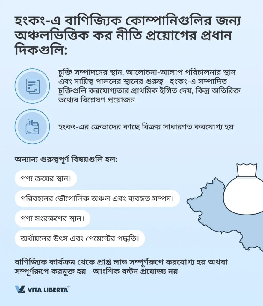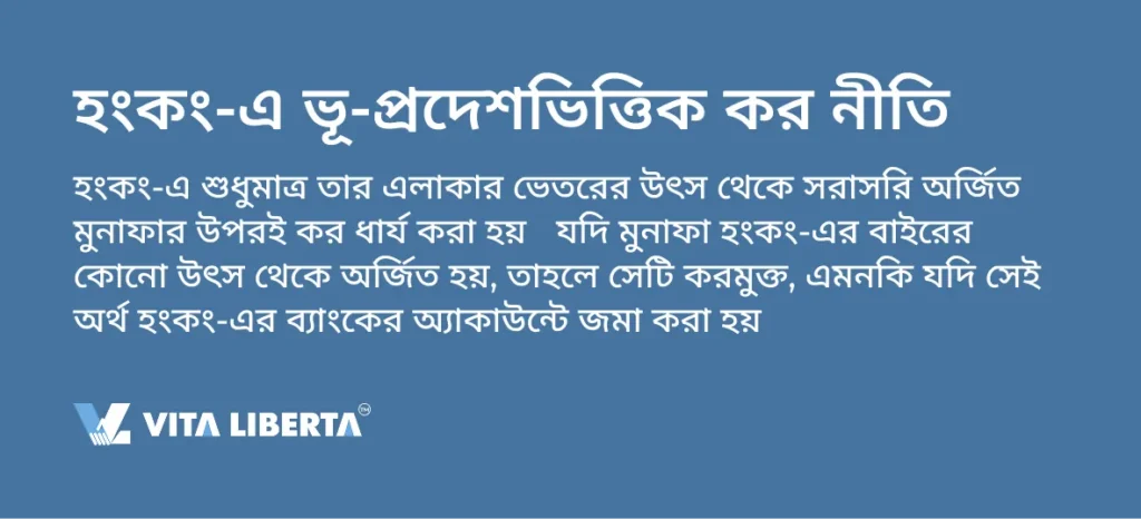হংকং-এর ভূ-প্রদেশভিত্তিক কর নীতি এই বিষয়ের উপর নির্ভরশীল নয় যে আপনি হংকং-এর বাসিন্দা কি না (“আপনি” বলতে এখানে ব্যক্তি কিংবা আপনার কোম্পানিকে বোঝানো হচ্ছে):