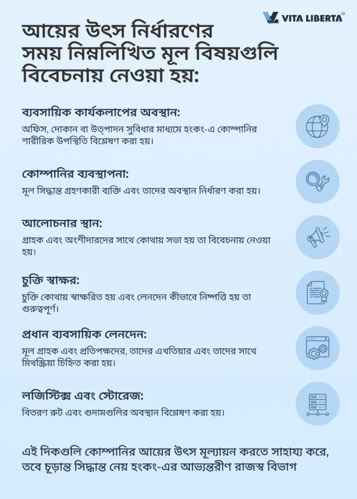 আয়ের উৎস নির্ধারণ হংকং-এর কর ব্যবস্থার সবচেয়ে গুরুত্বপূর্ণ এবং জটিল উপাদানগুলির মধ্যে একটি। অপ্রত্যাশিত কর দায়িত্ব এড়াতে, আপনার আয় কোথায় এবং কীভাবে অর্জিত হয়েছিল তা সঠিকভাবে প্রতিষ্ঠা করা অত্যন্ত গুরুত্বপূর্ণ।