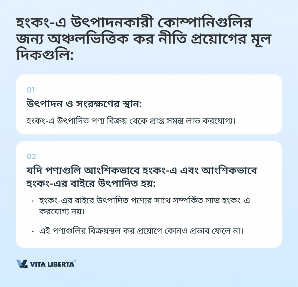 - হংকং-এ উৎপাদিত পণ্য বিক্রয় থেকে প্রাপ্ত সমস্ত লাভ করযোগ্য।