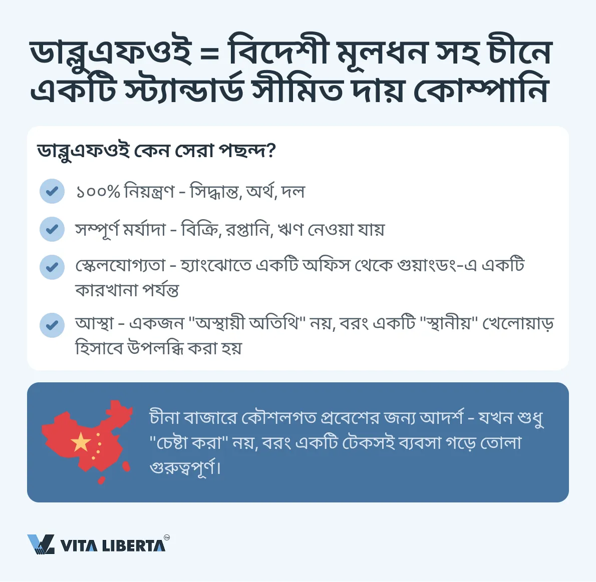 নিয়ন্ত্রণ, স্বচ্ছতা এবং দীর্ঘমেয়াদী স্থিতিশীলতা গুরুত্বপূর্ণ হলে চীনে ব্যবসা খোলার সময় এই ফর্মটির চাহিদা থাকে।