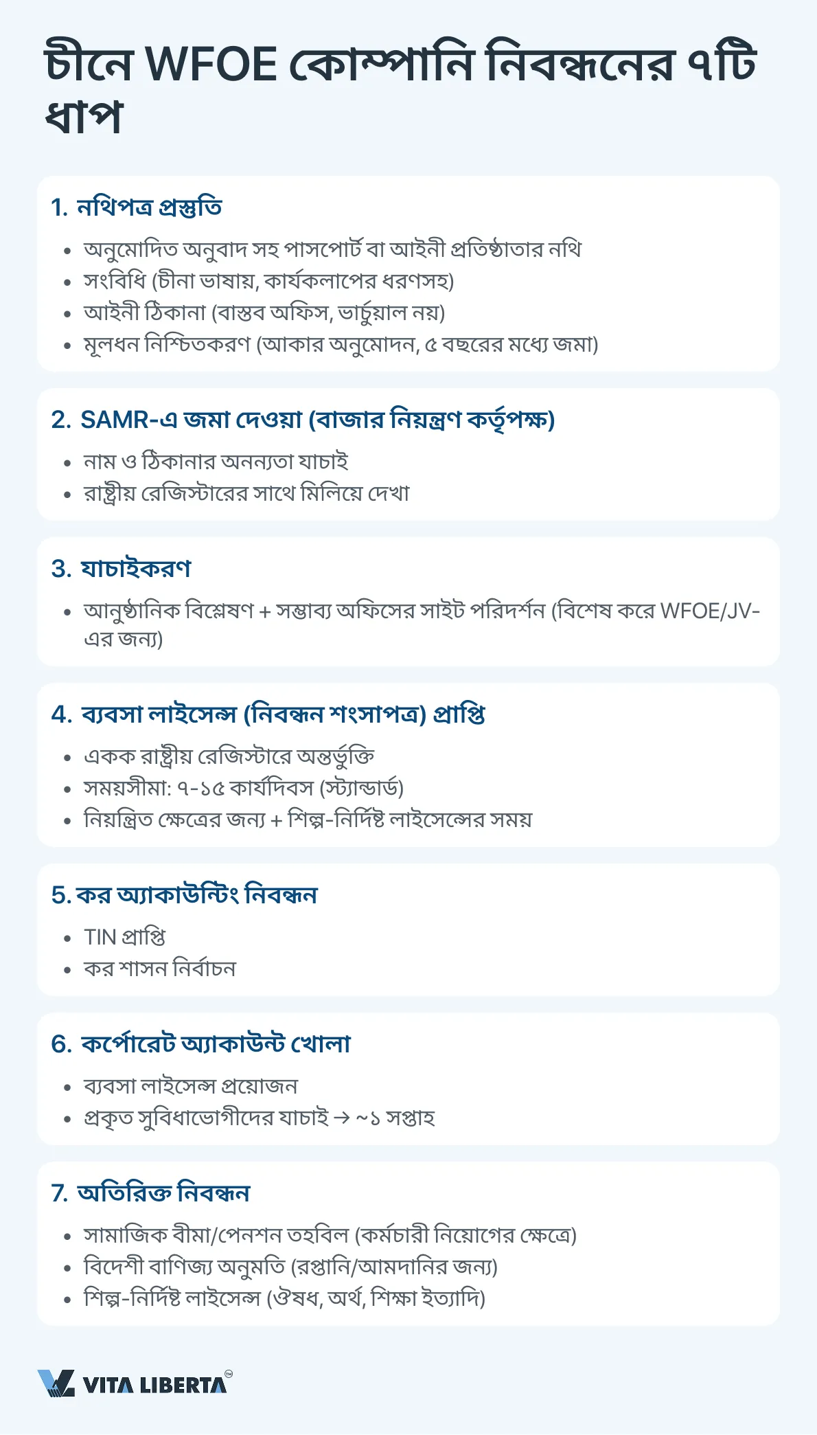 এই ক্রমটি বোঝা চীনে ব্যবসা খোলার সঠিক পরিকল্পনা করতে এবং বিলম্বের ঝুঁকি কমাতে সাহায্য করে।