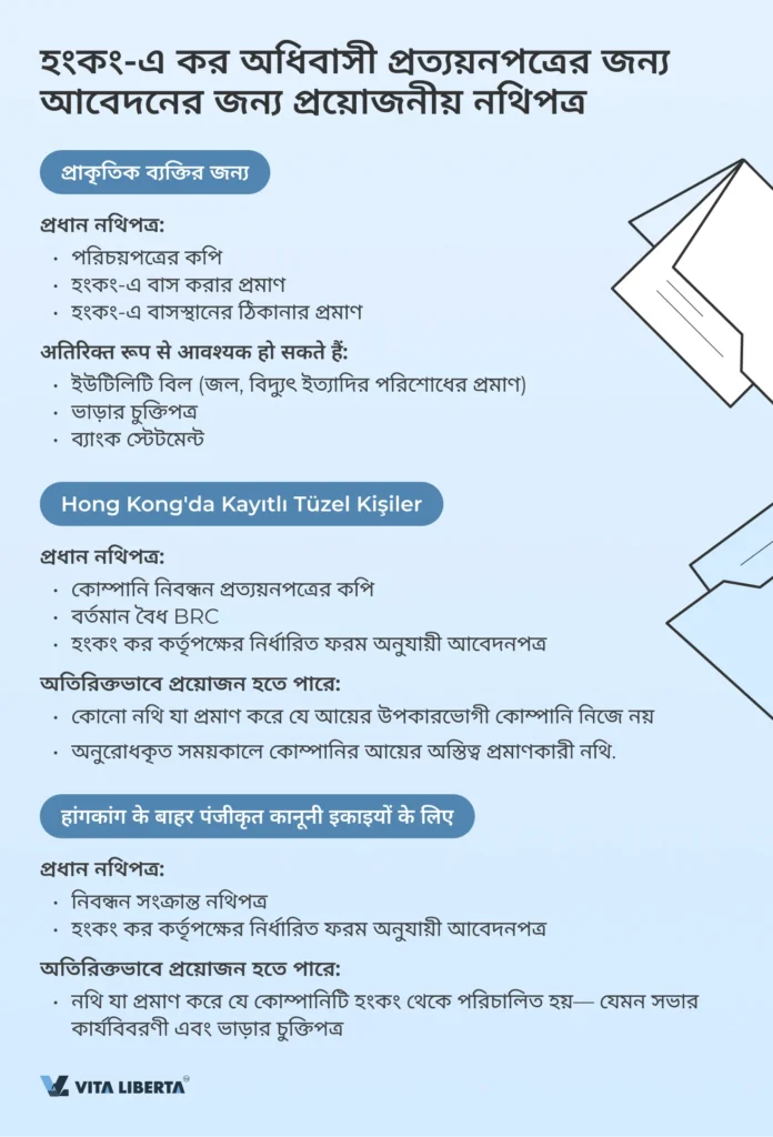 - হংকং কর কর্তৃপক্ষের নির্ধারিত ফরম অনুযায়ী আবেদনপত্র