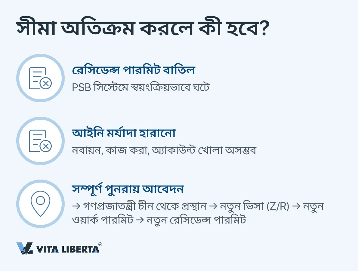 দীর্ঘ সময় চীনের বাইরে থাকার কারণে রেসিডেন্স পারমিট হারানোর ঝুঁকি
