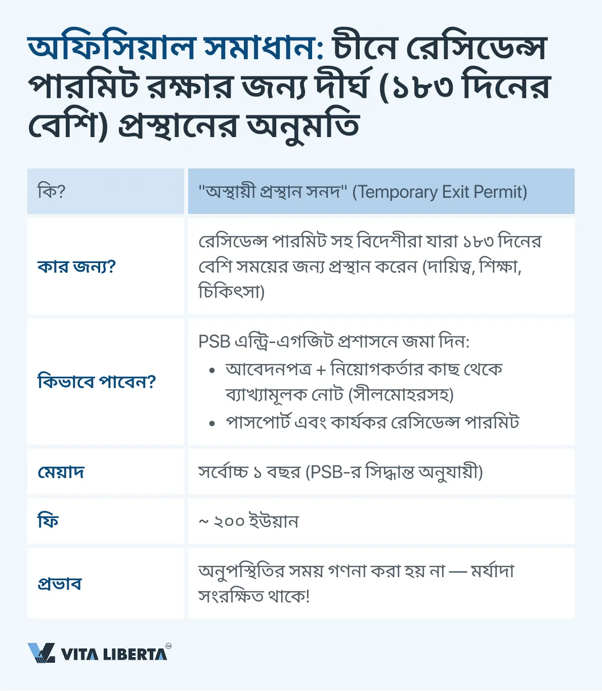 - ১৮৩ দিনের নিয়ম: এটি লঙ্ঘন না করেই, অথবা PSB-তে অস্থায়ী প্রস্থানের অফিসিয়াল অনুমতি প্রক্রিয়াকরণ করে এটি এড়ানো যেতে পারে।