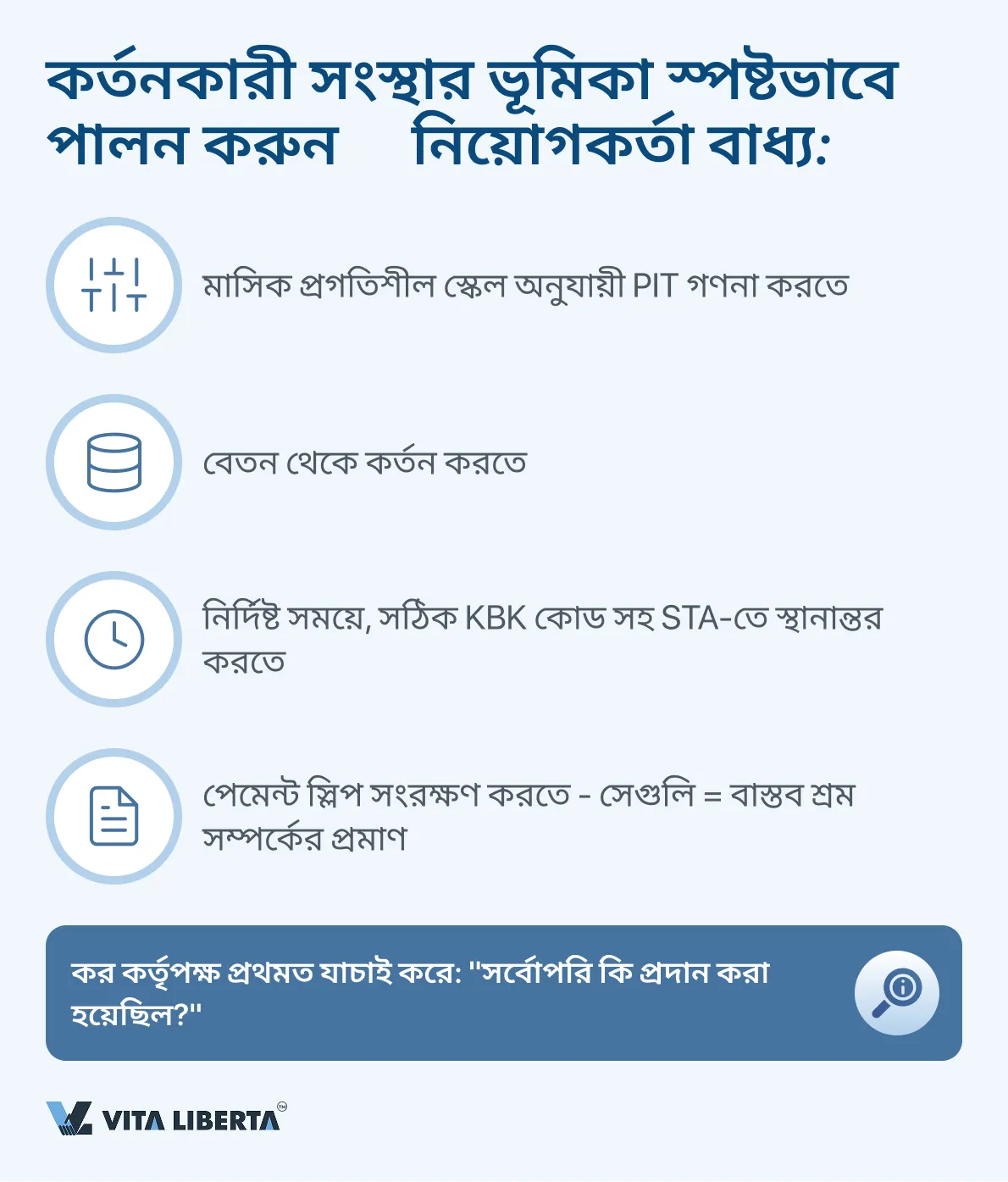 অত্যন্ত গুরুত্বপূর্ণ: নিয়মিত PIT প্রদানের প্রমাণপত্র (কর পেমেন্ট স্লিপ) উপস্থিতি পরিদর্শনের জন্য শ্রম সম্পর্কের বাস্তবতার প্রাথমিক প্রমাণ।