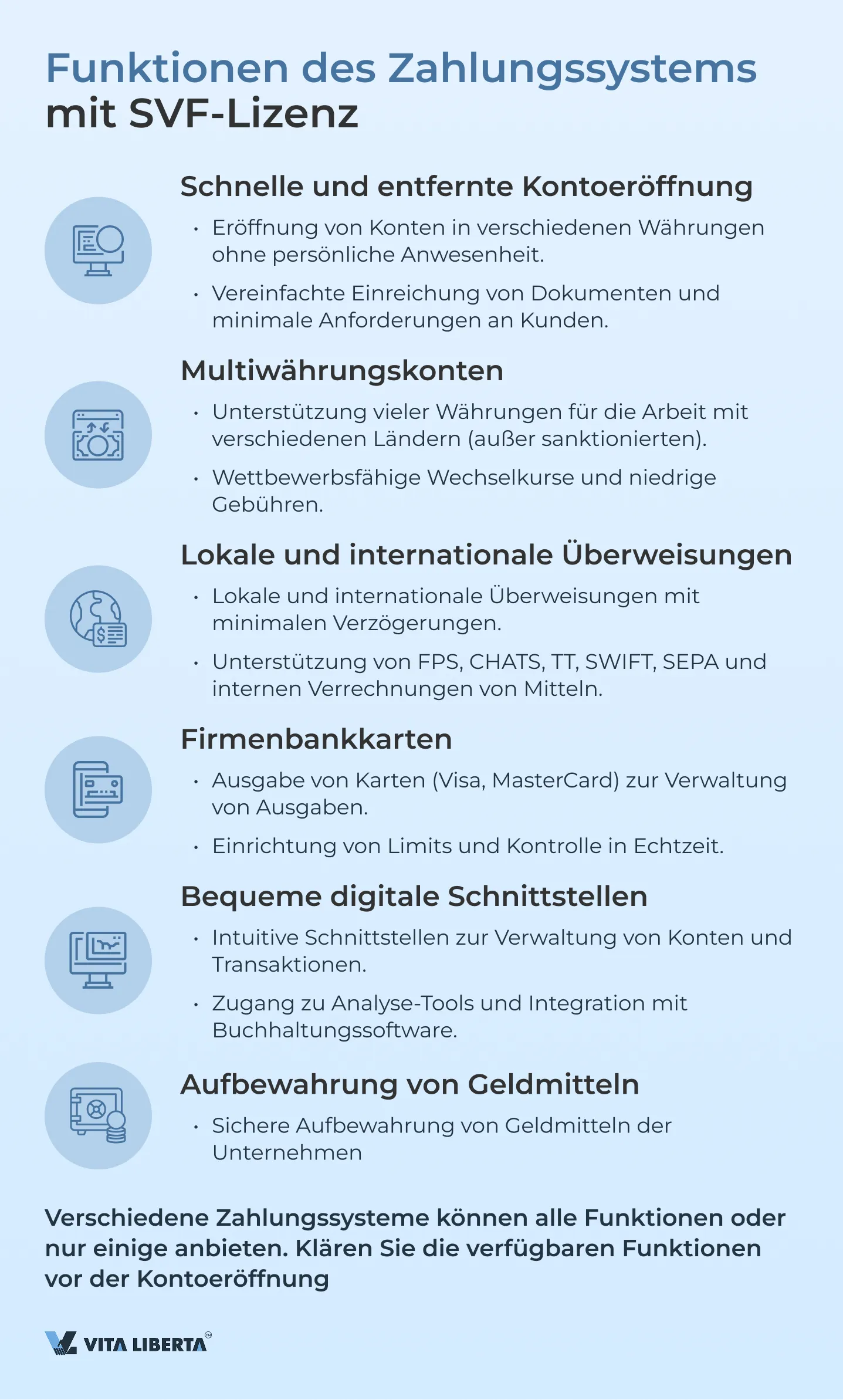 Funktionen von Zahlungssystemen mit SVF-Lizenz