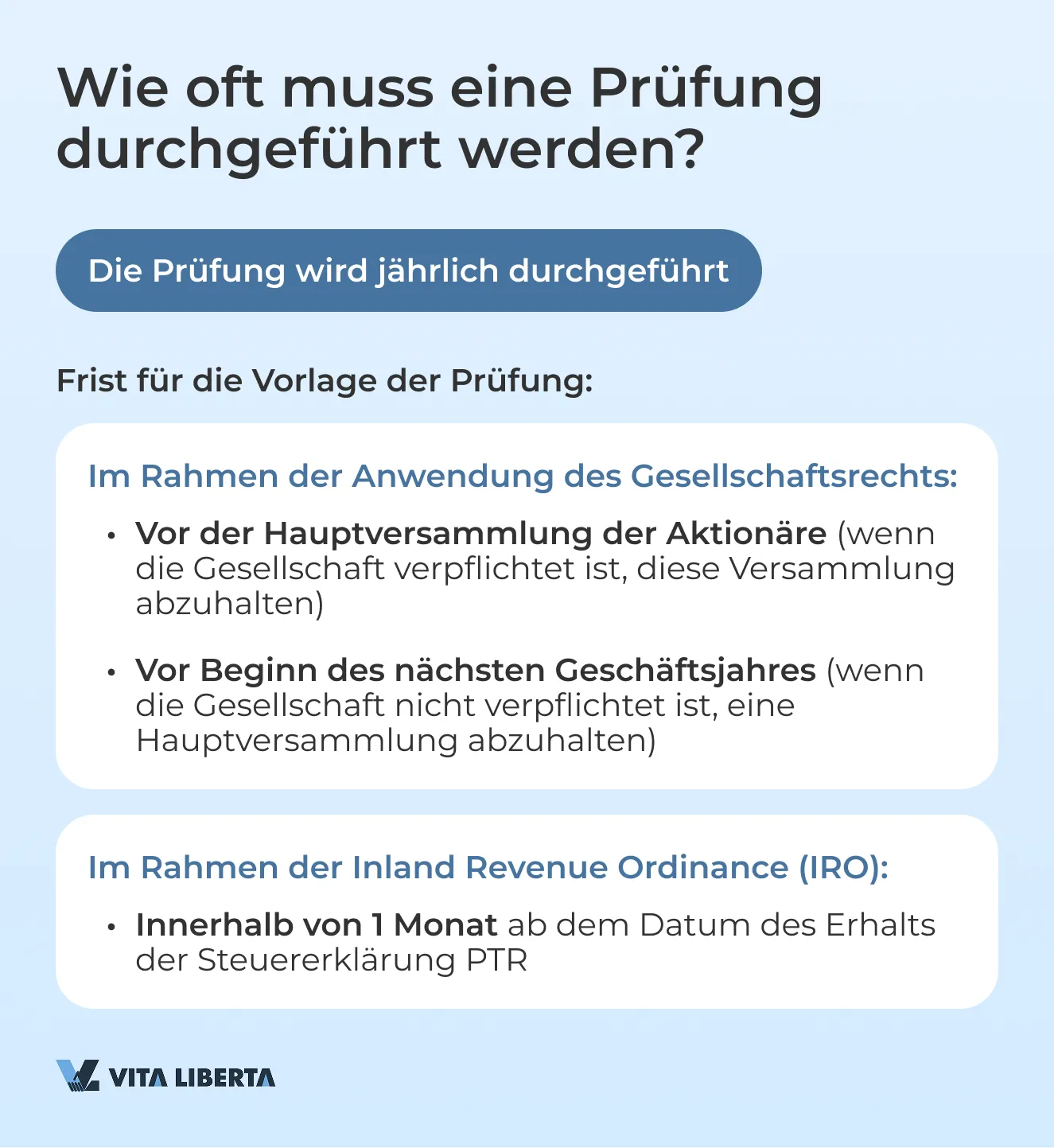 | Grundlage | Jährliche Pflichtprüfung | Pflichtprüfung für die Einreichung der PTR |
