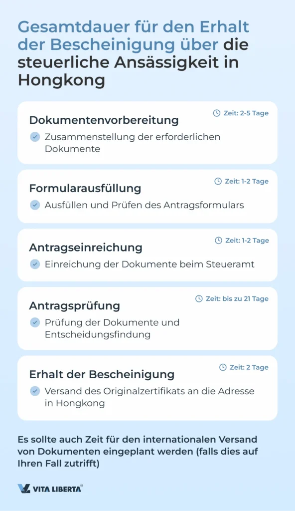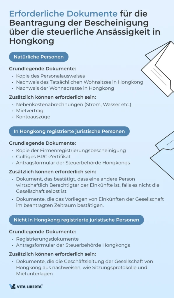 Antragsverfahren für eine Bescheinigung über die steuerliche Ansässigkeit in Hongkong