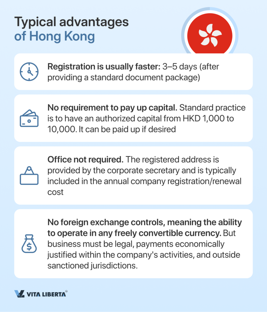 Hong Kong is often chosen not for the love of geography, but for speed and clear rules.