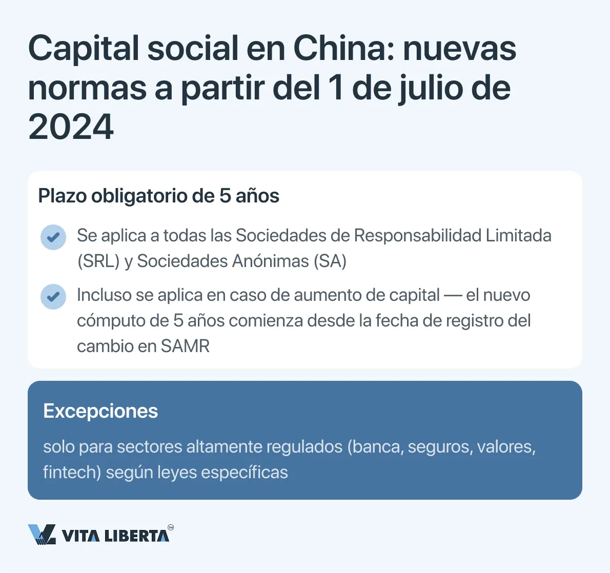 El principio de 5 años ahora también se aplica a los procedimientos de aumento de capital social. Para los aumentos registrados el 1 de julio de 2024 o después, el cómputo del nuevo plazo para aportaciones adicionales comenzará a partir de la fecha de registro del cambio correspondiente en SAMR.