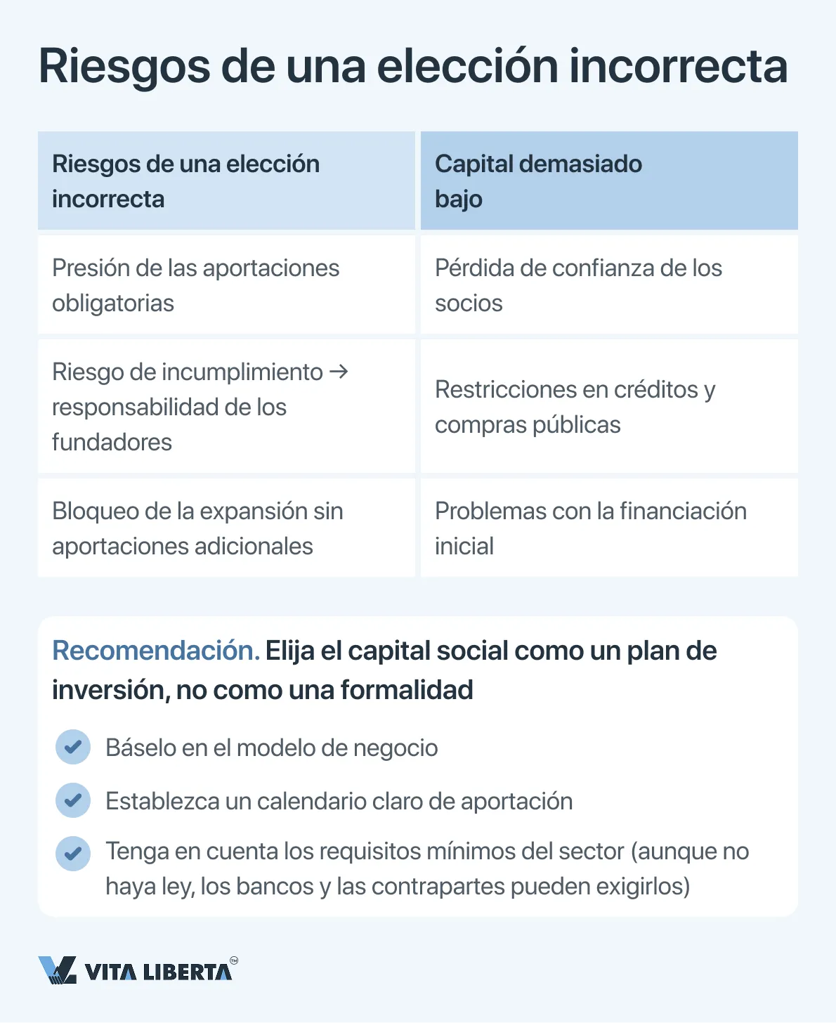Este cambio transforma el enfoque de planificación. El monto del capital social deja de ser una cifra condicional “para el futuro”. Requiere un cálculo ponderado, basado en previsiones financieras reales y un calendario de inversiones para la perspectiva de los próximos cinco años. Sobreestimar la cifra puede crear una carga financiera insostenible, mientras que subestimarla puede socavar la confianza de los socios y limitar las oportunidades de obtener financiamiento mediante deuda, así como la financiación de la empresa en su etapa inicial de desarrollo.