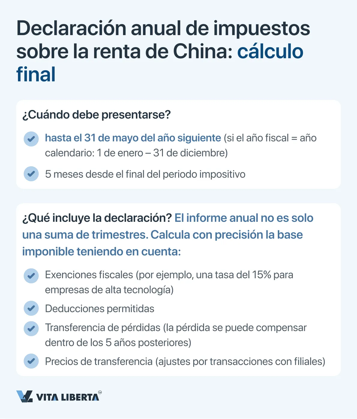Declaración del impuesto de sociedades y procedimiento de pago de China