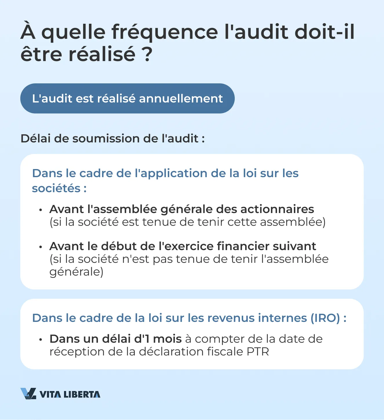 | Fondement | Audit annuel obligatoire | Audit obligatoire pour le dépôt de la déclaration fiscale PTR |