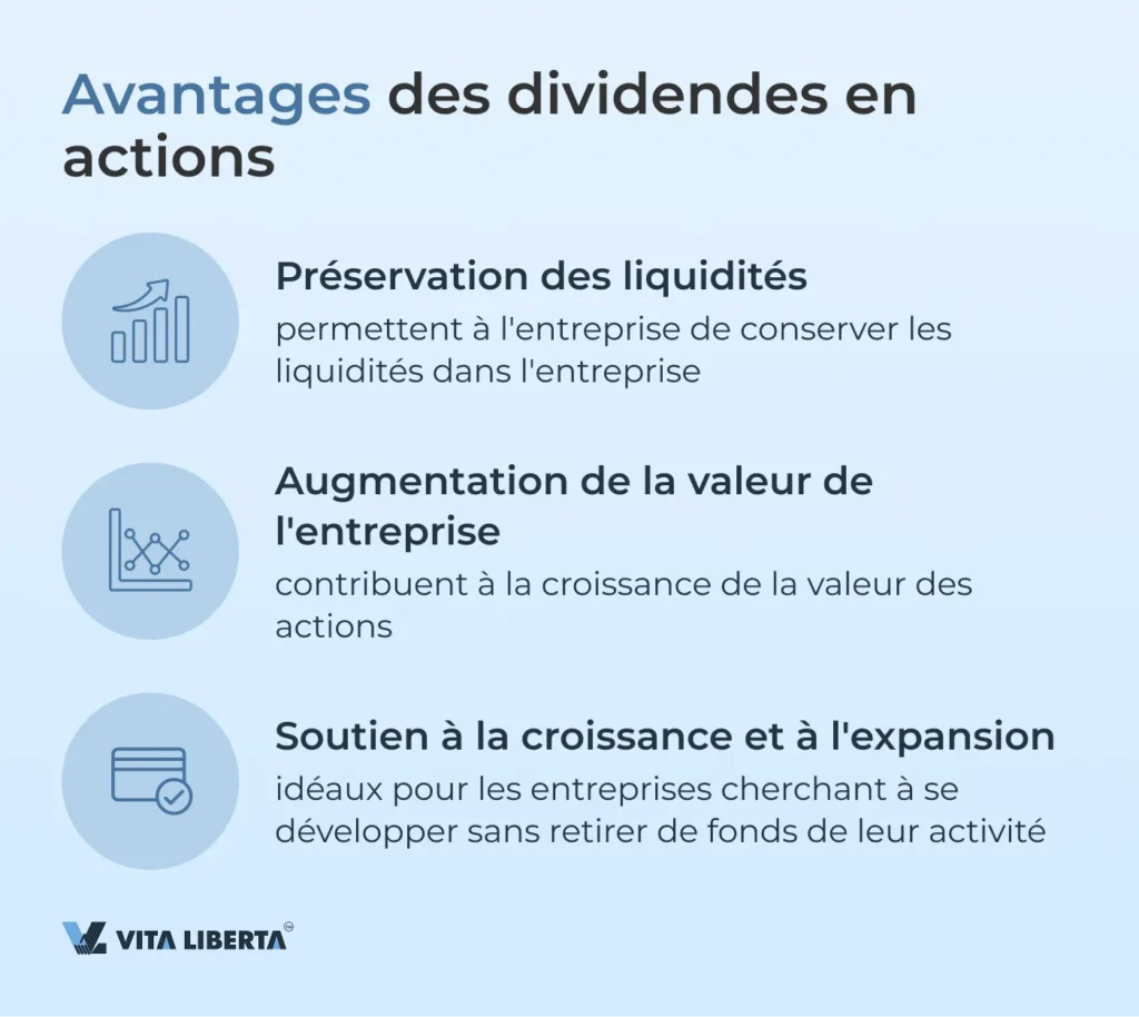 Les dividendes en actions sont particulièrement utiles lorsque l’entreprise cherche à maintenir la croissance de son capital et à conserver des liquidités pour réaliser d’autres objectifs stratégiques.