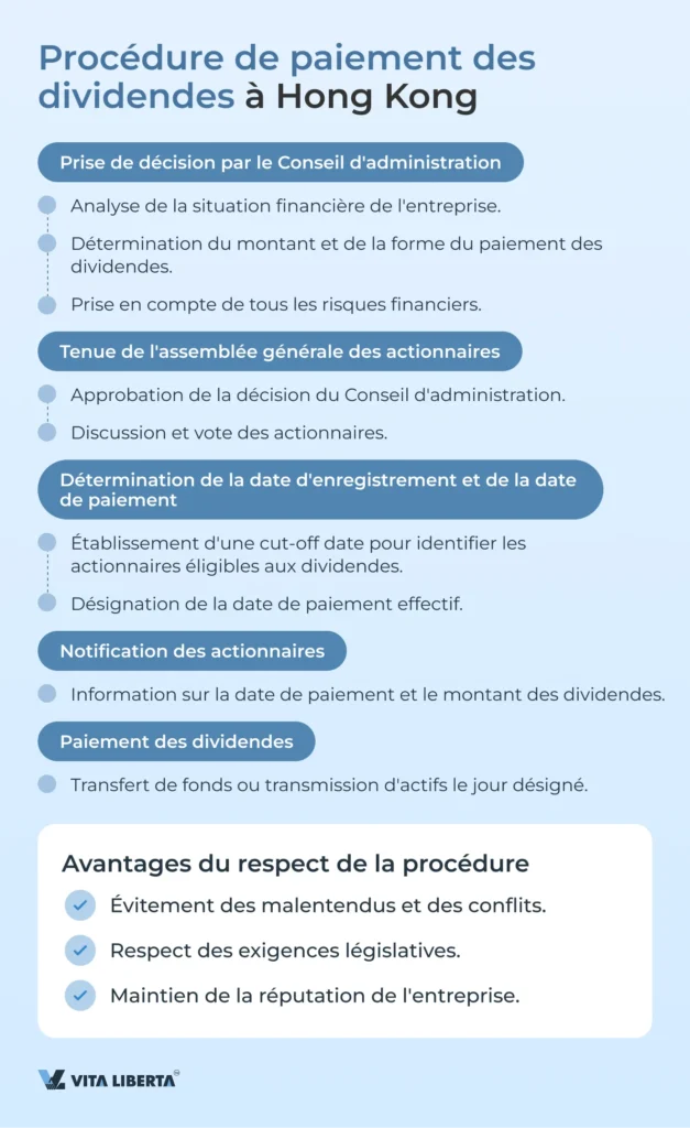 La procédure de paiement des dividendes à Hong Kong comprend plusieurs étapes clés :