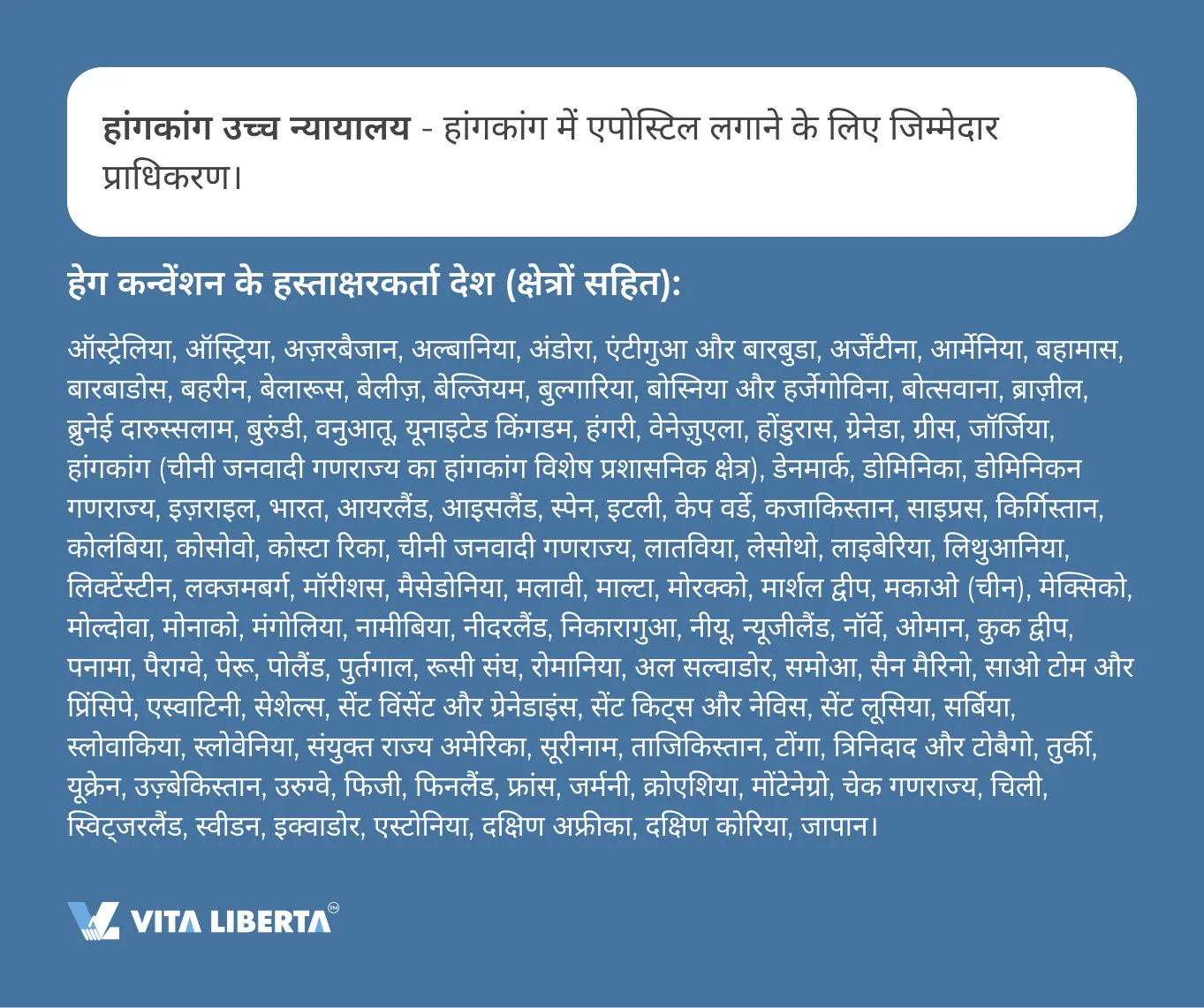 - हॉन्ग कॉन्ग की सर्वोच्च अदालत में एपोस्टिल लगाना।
