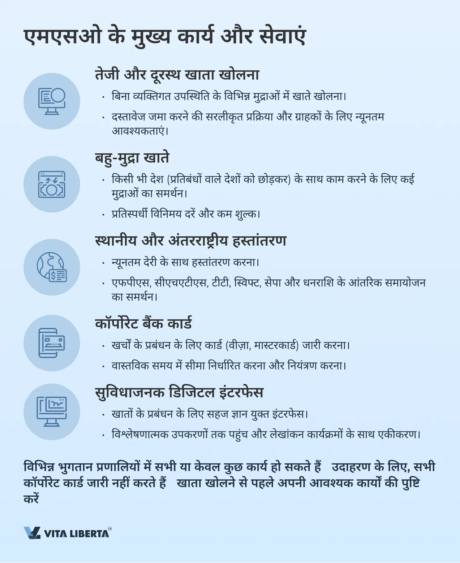 • खर्चों के सुविधाजनक प्रबंधन के लिए कॉर्पोरेट कार्ड (वीज़ा, मास्टरकार्ड) जारी करना।