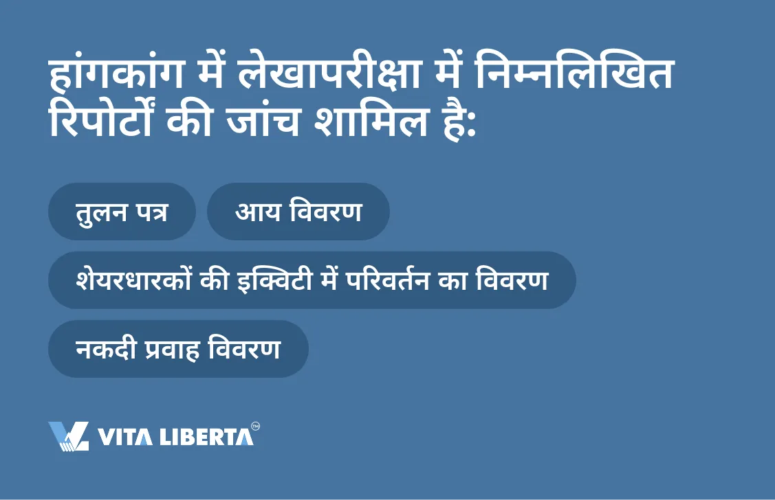 अन्य देशों के विपरीत, हांगकांग में लेखापरीक्षा में न केवल कंपनी के वित्तीय विवरणों की समीक्षा शामिल है, बल्कि सरकार को देय लाभ और करों का सत्यापन भी शामिल है।