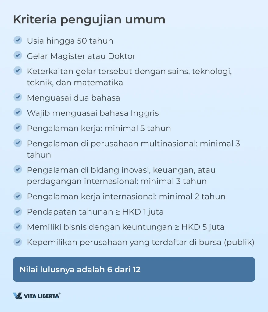 - Kategori A Persyaratan: Memiliki penghasilan minimal HK$2,5 juta pada tahun sebelumnya.