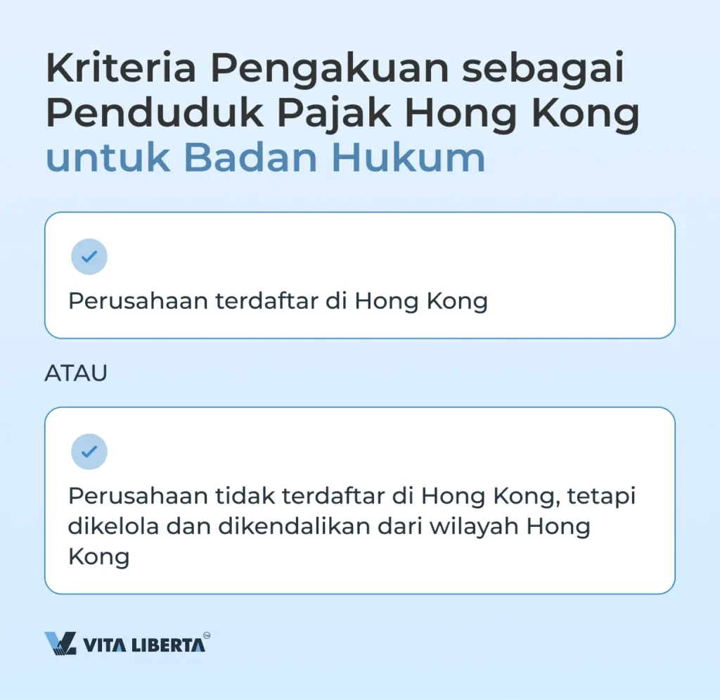 - Manajemen dan Kendali dari Hong Kong: Jika perusahaan tidak terdaftar di Hong Kong, perusahaan harus dikelola dan dikendalikan dari wilayah Hong Kong.