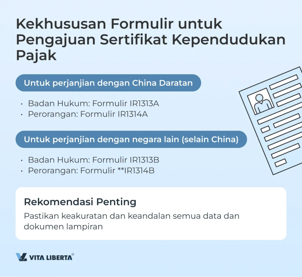 - Digunakan untuk pengajuan aplikasi di bawah perjanjian penghindaran pajak berganda dengan negara lain selain China.