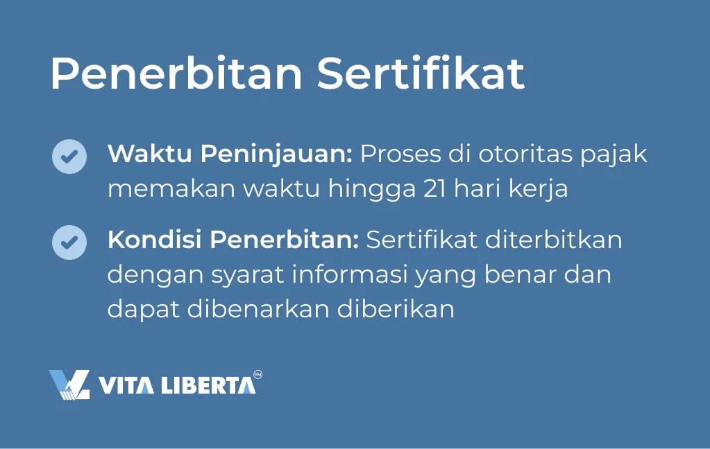 Setelah aplikasi diajukan, Otoritas Pajak Hong Kong akan meninjau aplikasi dan, jika perlu, meminta informasi tambahan. Jika informasi yang diberikan benar dan dapat dibenarkan, otoritas pajak akan menerbitkan sertifikat. Proses peninjauan aplikasi biasanya memakan waktu hingga 21 hari kerja.