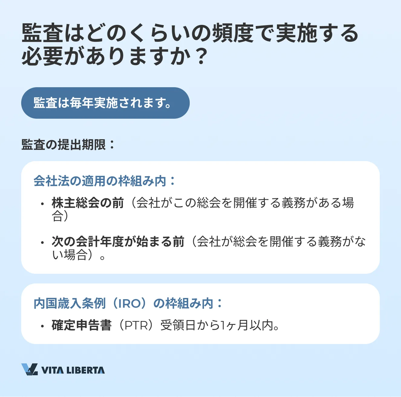 | 根拠 | 年次義務監査 | 確定申告書(PTR)提出のための義務監査 |
