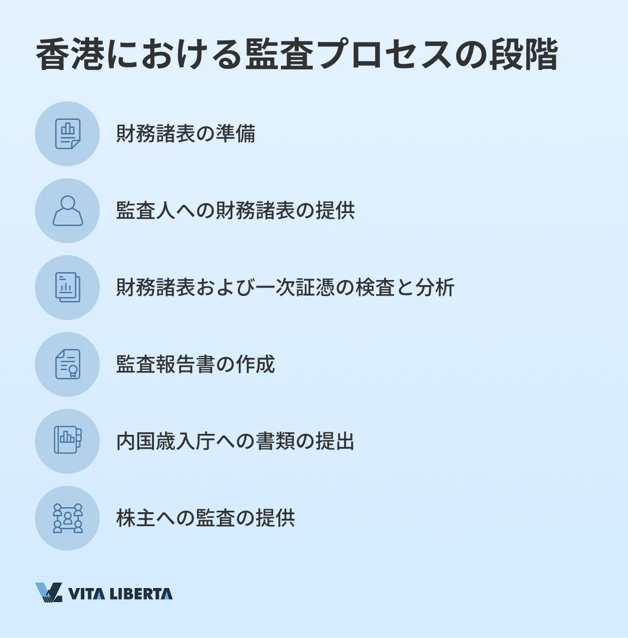監査プロセスは、監査人が財務指標だけでなく会社の内部組織も検査・確認する、いくつかの段階で構成されています。監査の目的は、会社の財務報告がその状況について正確かつ信頼性の高い情報を提供しているという確信を得ることです。香港における監査プロセスは他国と同様であり、以下の主要なステップを含みます:
