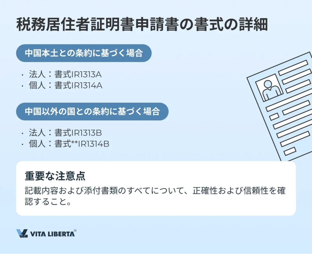 - 中華人民共和国(中国本土)との間の二重課税防止条約に基づく申請に使用される。