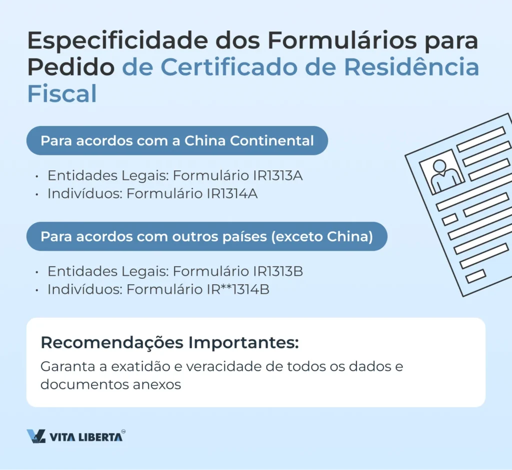 Especificidades dos Formulários IR1313A, IR1313B, IR1314A, IR1314B (Pedido de Certificado de Estatuto de Residente)
