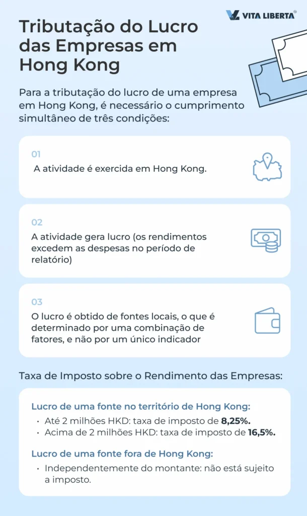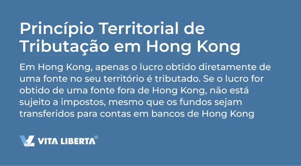 – Em Hong Kong, apenas o lucro obtido de fontes dentro do seu território é tributado. O lucro obtido fora de Hong Kong não está sujeito a impostos, mesmo que os fundos sejam transferidos para contas em bancos de Hong Kong.