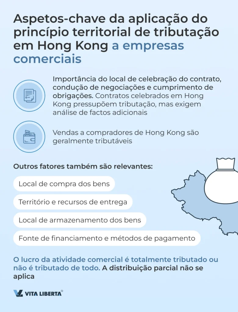 – Para empresas comerciais, são importantes o local de celebração do contrato e de realização das negociações. Para empresas de produção, a localização da produção e armazenamento das mercadorias é fundamental. Serviços de intermediação são tributados se forem prestados em Hong Kong.