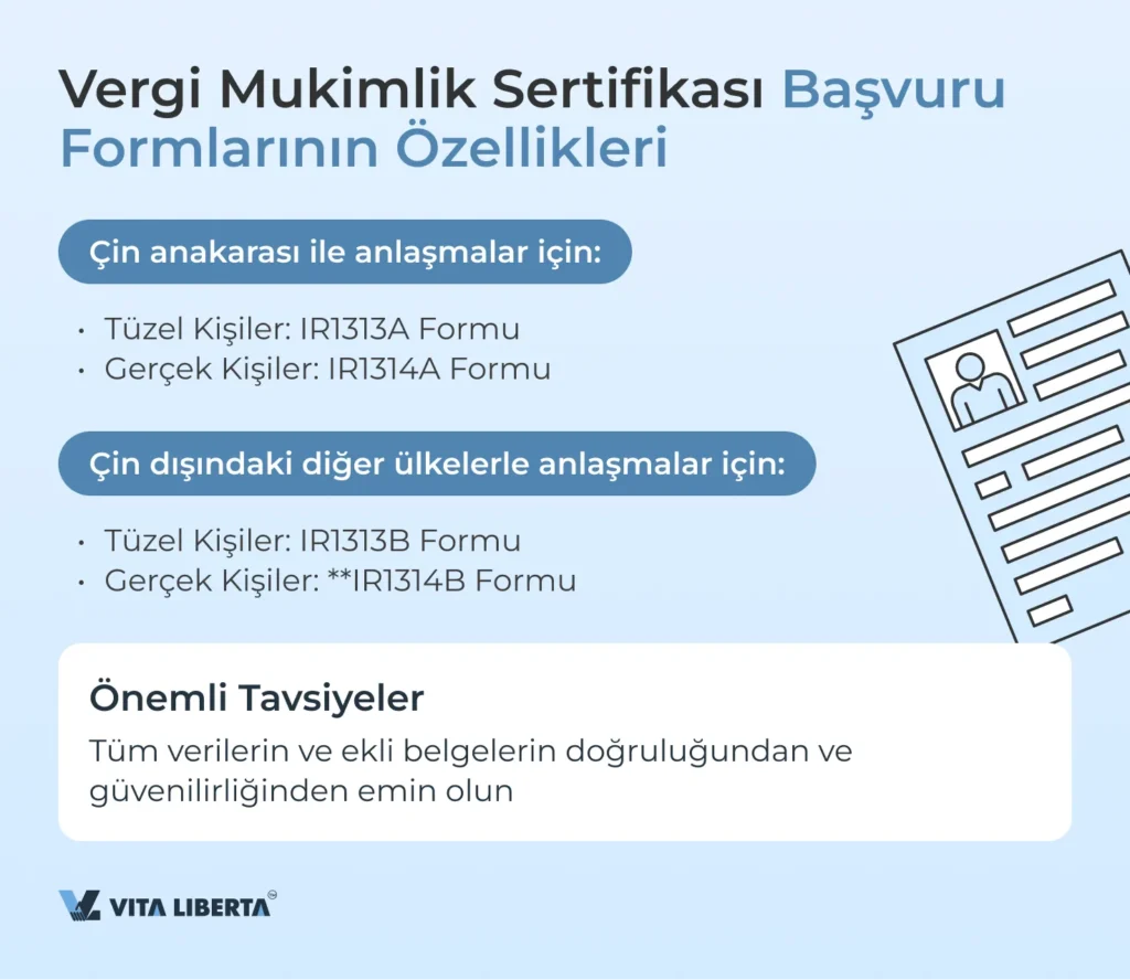 - Çin anakarası ile yapılan Çifte Vergilendirmeyi Önleme Anlaşması kapsamında başvurular için tasarlanmıştır.
