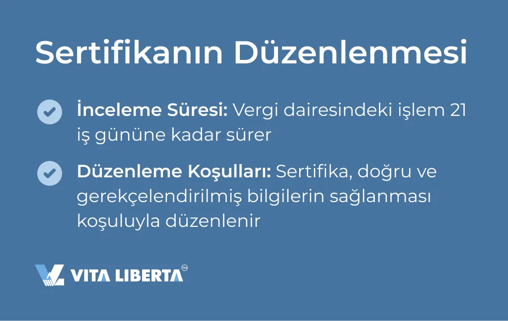 Süreç birkaç adımdan oluşur: gerekli belgelerin hazırlanması, başvurunun doldurulması ve sunulması, başvurunun vergi dairesi tarafından incelenmesi ve sertifikanın alınması. Gecikmeleri önlemek için doğru ve gerekçelendirilmiş bilgiler sağlamak önemlidir.
