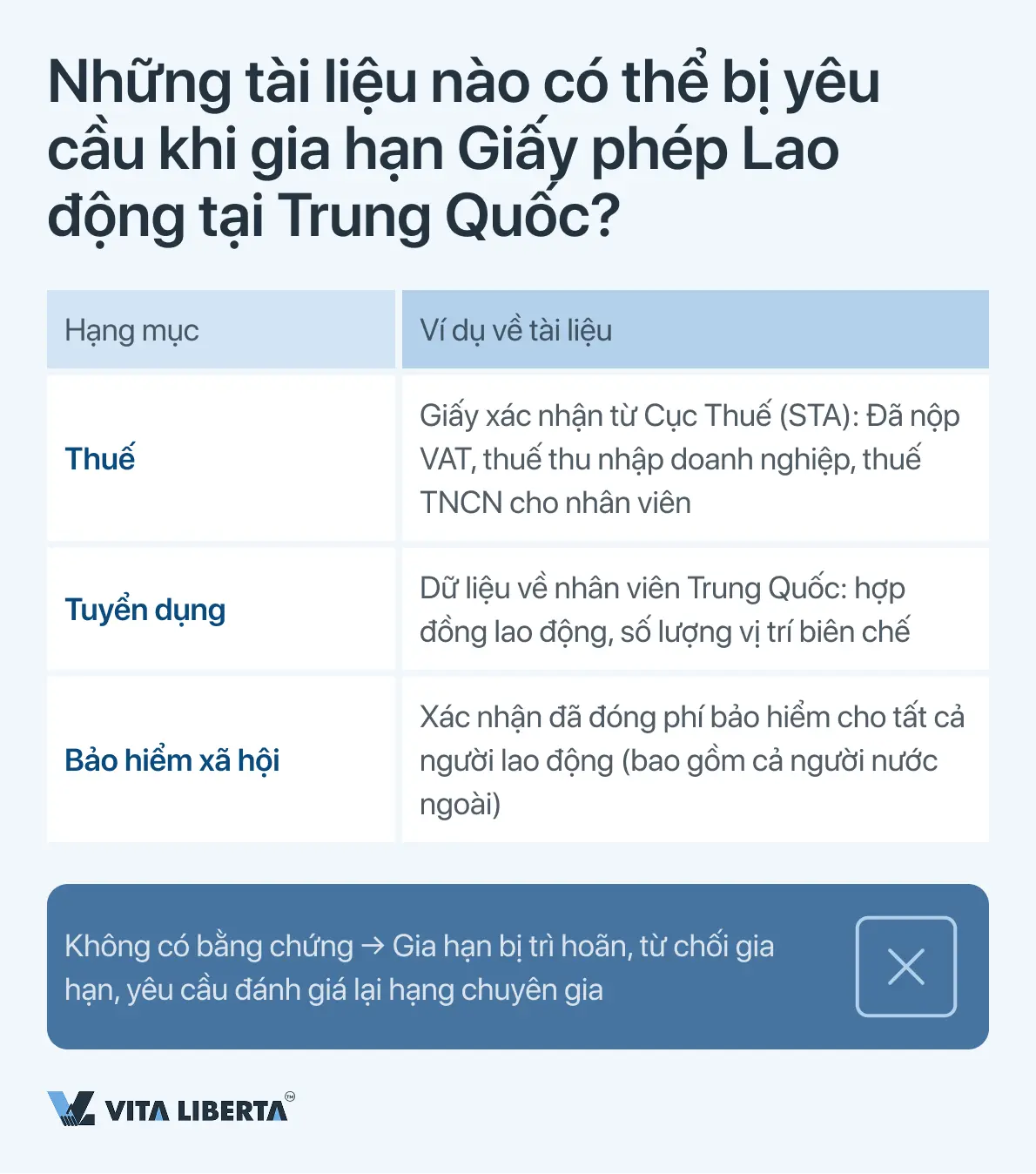 Sau 1-2 năm kể từ khi làm thủ tục lần đầu, trong quá trình gia hạn “Giấy phép Lao động cho Người nước ngoài”, cơ quan có thẩm quyền về chuyên gia nước ngoài (FEB/SAFEA) có thể tiến hành kiểm tra chuyên sâu về hoạt động kinh tế thực tế của công ty sử dụng lao động và tính cần thiết của việc tiếp tục lưu trú của nhà quản lý nước ngoài. Mục tiêu của việc kiểm tra là xác nhận rằng việc thu hút nhân sự nước ngoài mang lại lợi ích cụ thể cho nền kinh tế địa phương.