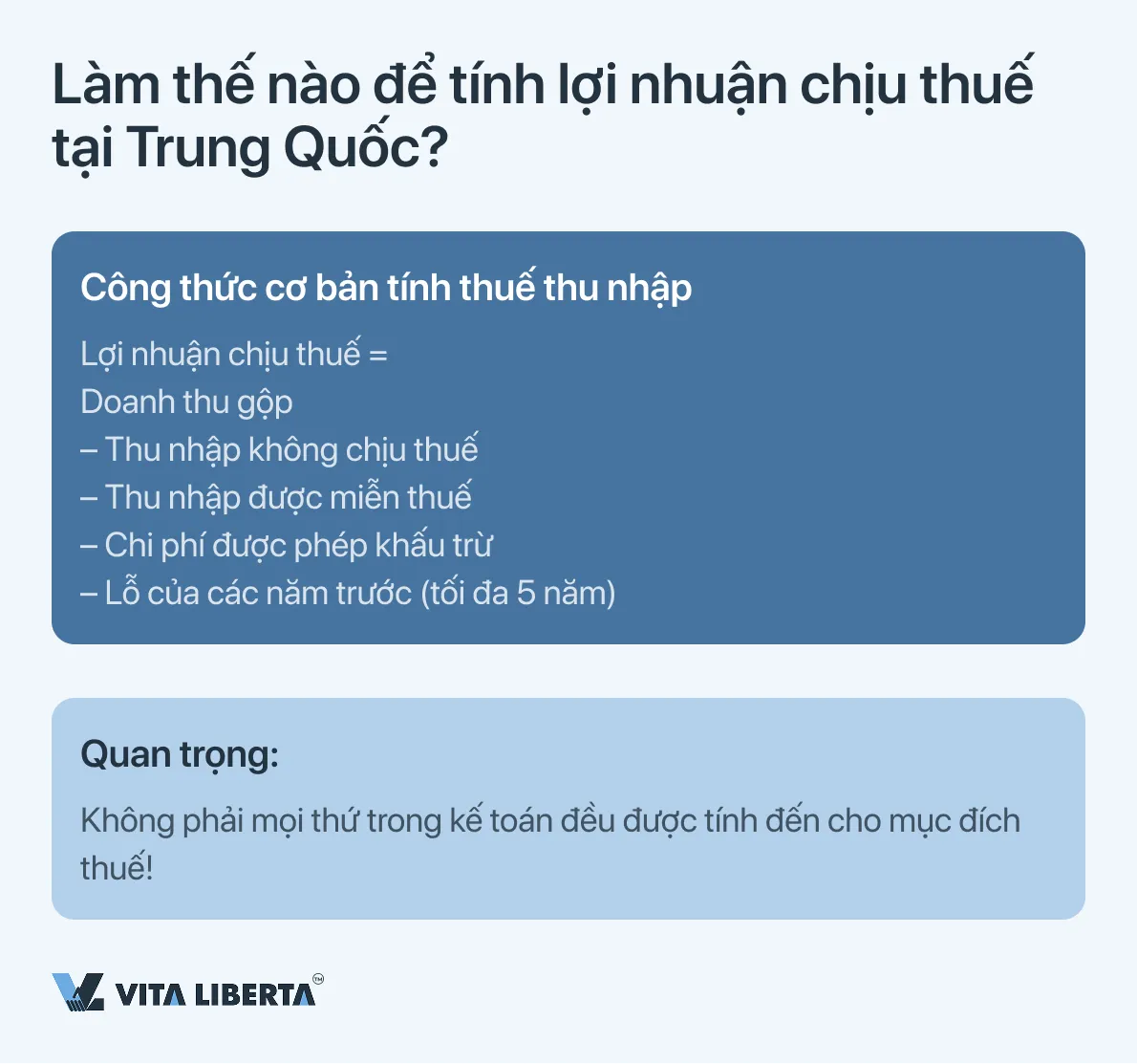 | Cấm chuyển lỗ sang kỳ trước | Hoàn toàn bị cấm. | Luật thuế Trung Quốc không quy định cơ chế chuyển lỗ sang kỳ trước (carry-back loss). Việc hoàn thuế hoặc bù trừ thuế đã nộp trước đó bằng lỗ của kỳ hiện tại là không thể. |