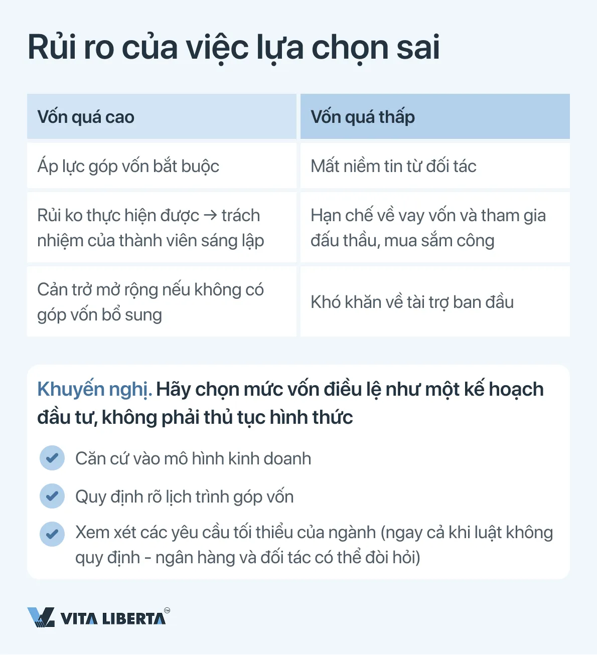 Thay đổi này làm chuyển đổi cách tiếp cận về hoạch định. Quy mô vốn điều lệ không còn là một con số ước lượng “cho tương lai”. Nó đòi hỏi một tính toán cân nhắc, dựa trên các dự báo tài chính thực tế và lịch trình đầu tư theo lịch trong tầm nhìn 5 năm tới. Đưa ra con số quá cao có thể tạo ra gánh nặng tài chính không thể đáp ứng, trong khi con số quá thấp có thể làm suy giảm niềm tin của đối tác và hạn chế khả năng huy động vốn vay, cũng như tài trợ cho công ty trong giai đoạn khởi đầu phát triển.