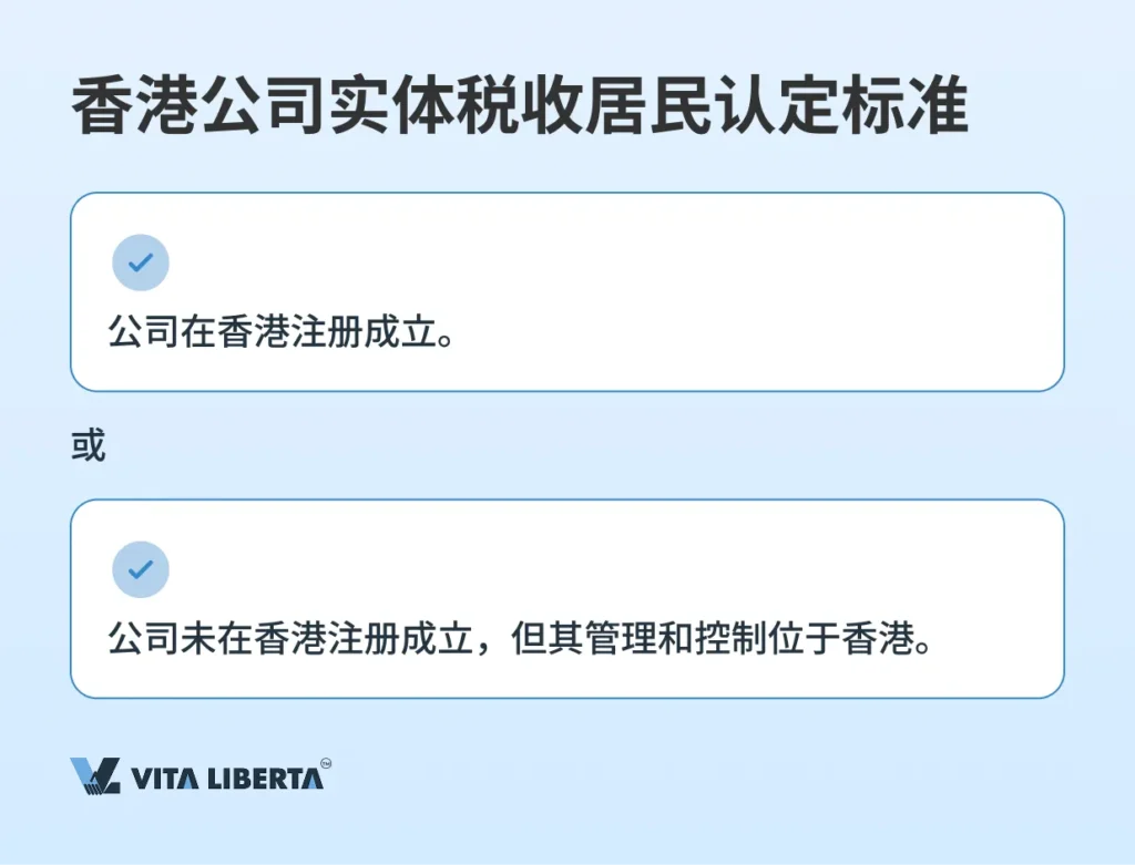对于公司实体,要求有所不同,满足以下任一条件即可被认定为香港税收居民: