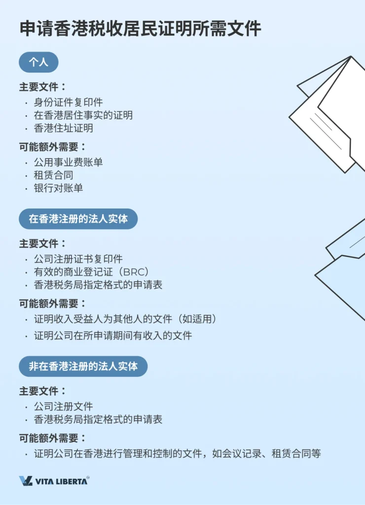 - 香港税务局指定格式的申请表。