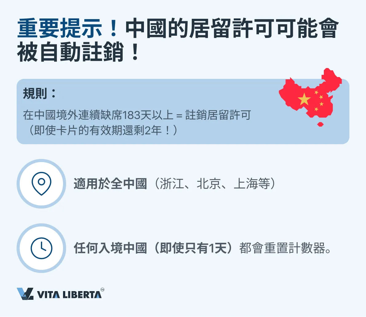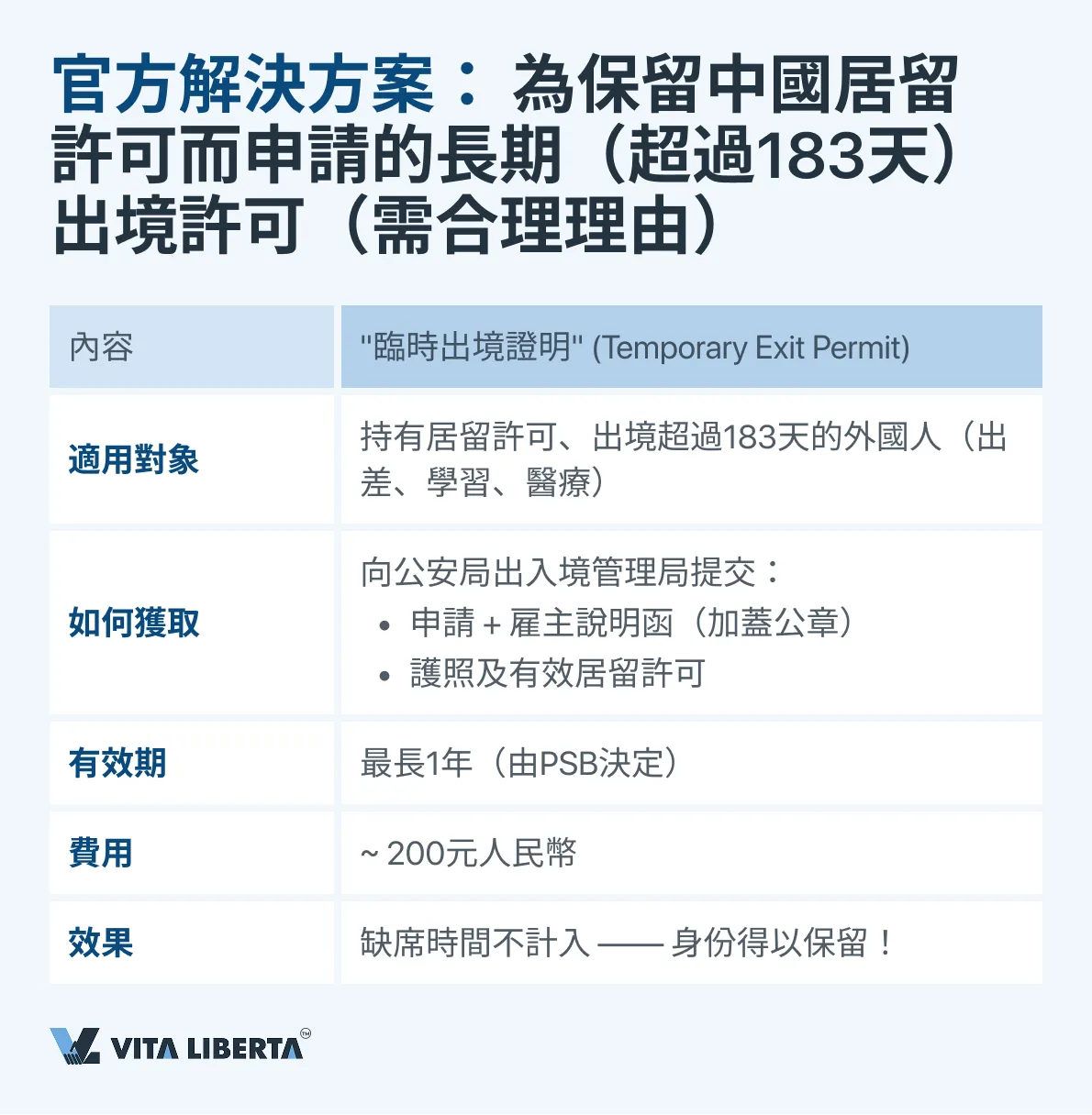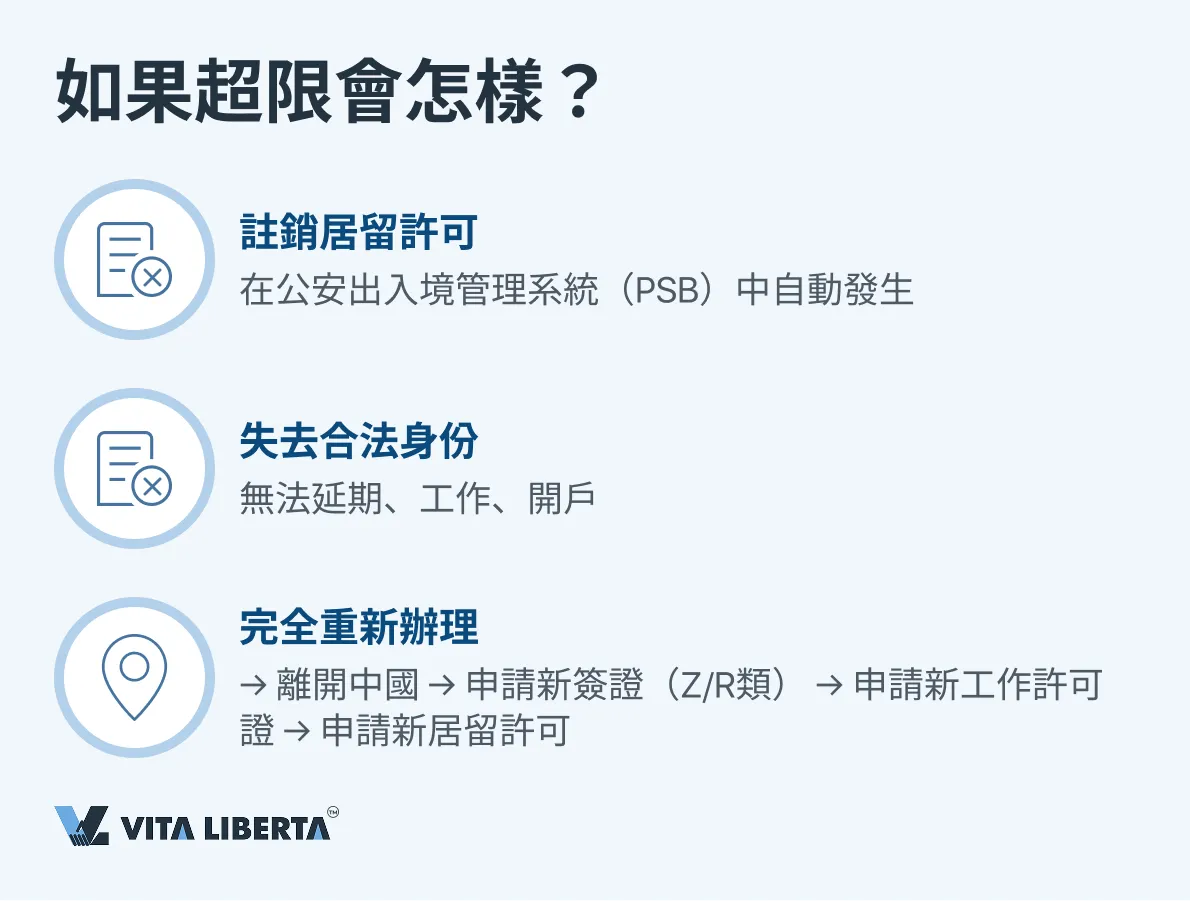 - 183天規則: 可以通過不超期或向公安出入境管理部門申請”臨時出境證明”來遵守。