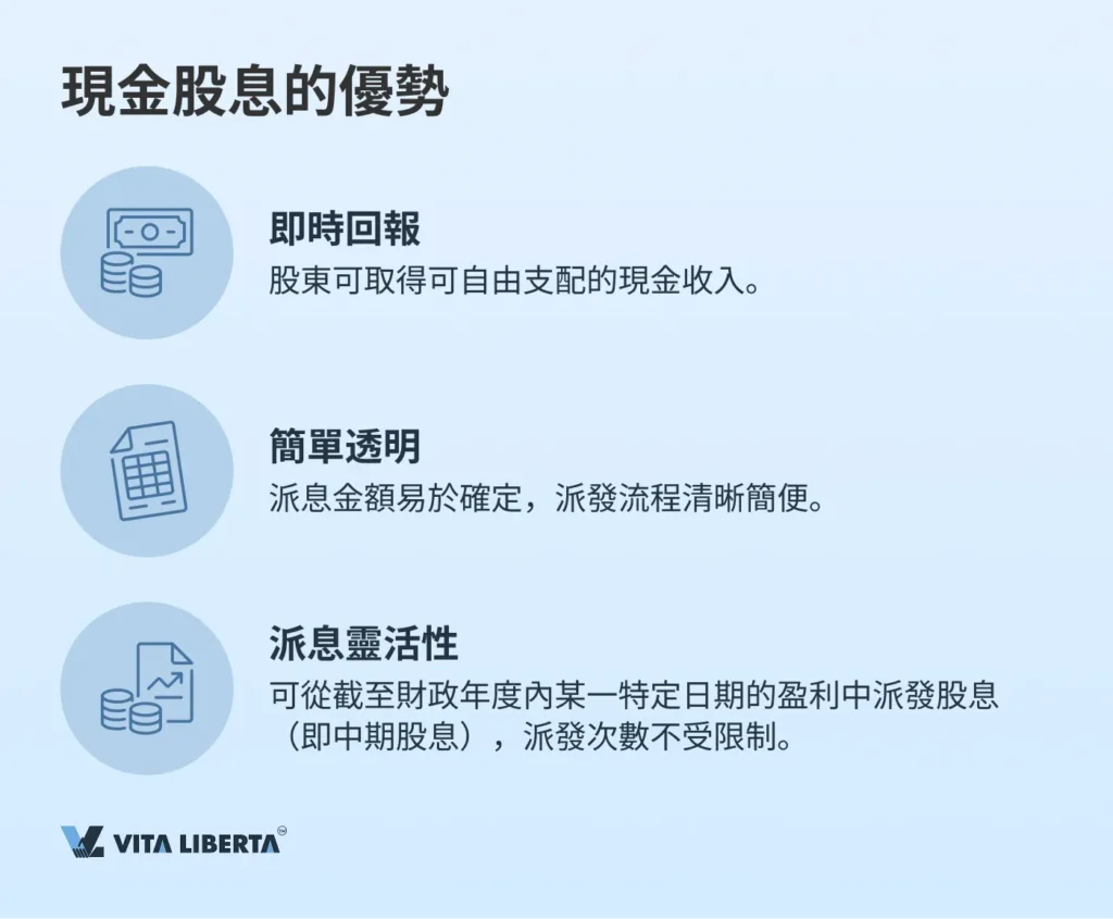 - 即時回報:股東可取得可自由支配的現金收入,提升投資吸引力。