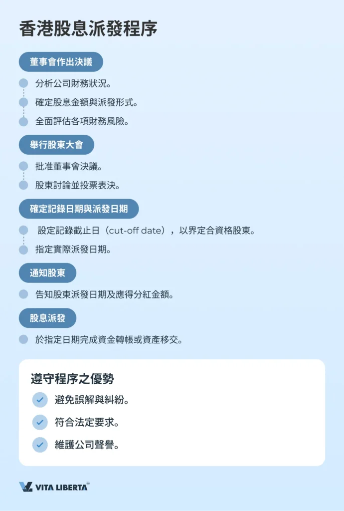 香港股息派發程序包含以下若干關鍵步驟: